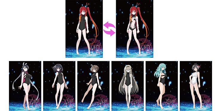 今作の新キャラクターを含む登場人物7人の浄化服イラストを使用したレンチキュラーチェンジングカードの7種セット。