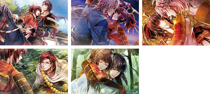 「源頼朝」「平知盛」「平教経」「武蔵坊弁慶」「春玄」のイラストを使用したスイートシーンコレクション5種セット。