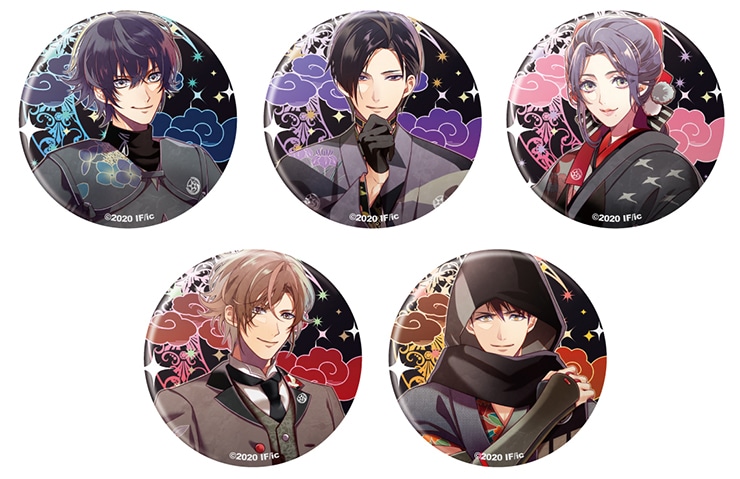 「南郷 久史」「松原 銀之助」「守田 楓花」「咲村 賢」「中井 徳治郎」のイラストを使用した缶バッジ5種セット。