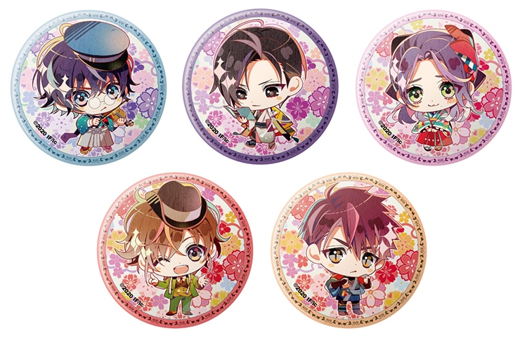 「南郷 久史」「松原 銀之助」「守田 楓花」「咲村 賢」「中井 徳治郎」のちびキャライラストを使用した缶バッジ5種セット。