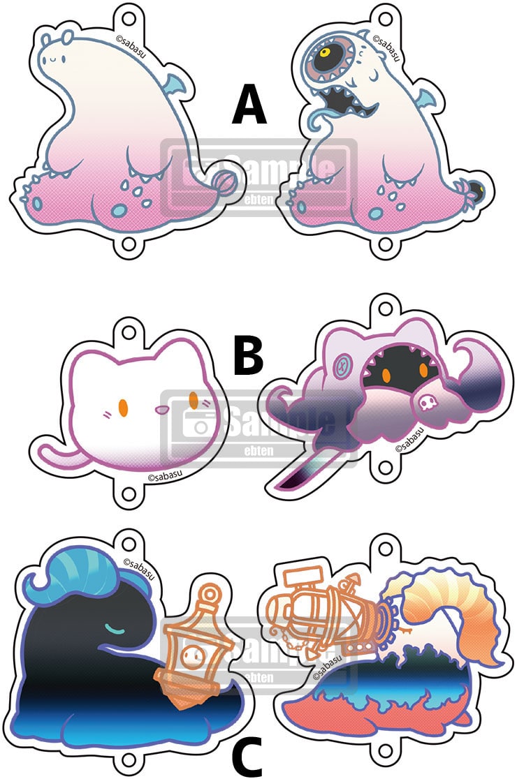 モンスターのbefore/afterカラーイラストのアクリルキーホルダーです。