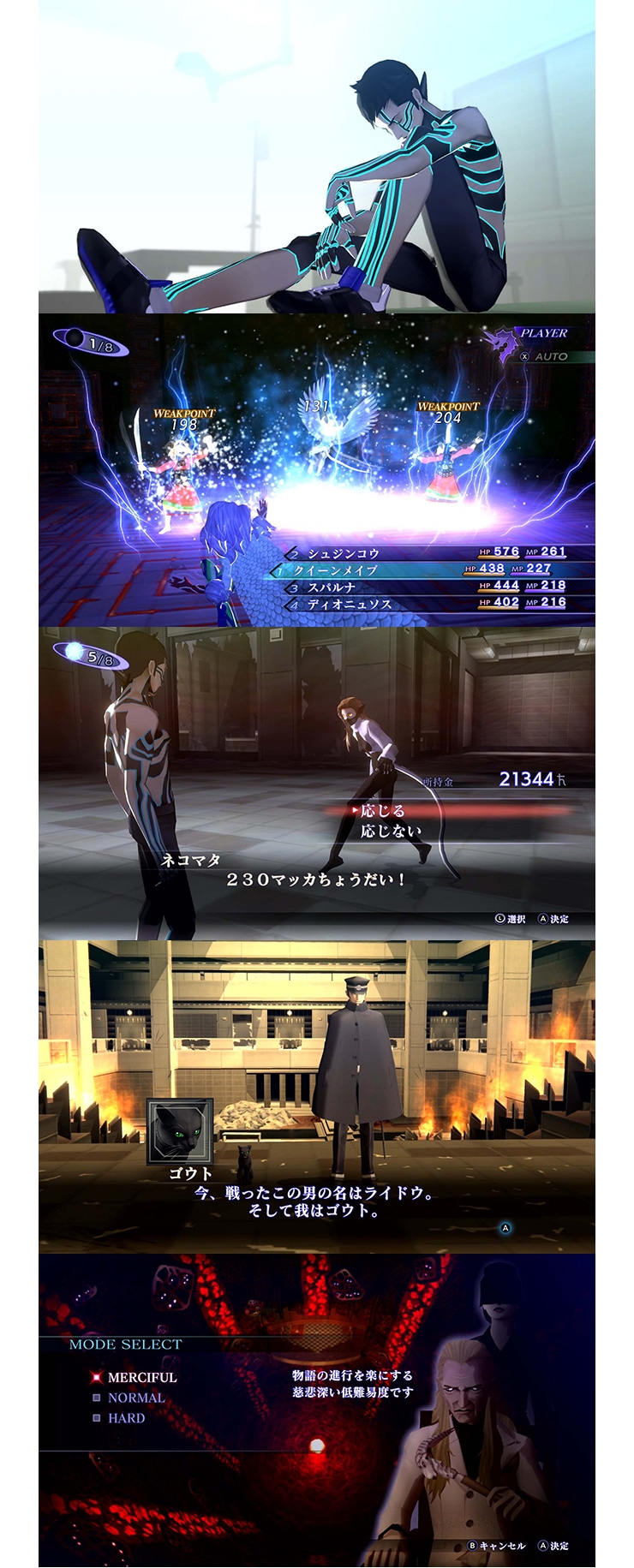 『ペルソナ5』にもその派生システムが受け継がれている、アトラス作品のバトルシステムの原点である「プレスターンバトル」を搭載。相手の弱点を突けば有利に戦闘を進めることができる、シンプルながらも奥深いバトルシステム。また、悪魔と交渉し共に戦う仲魔にしたり、悪魔同士を合体し新たな悪魔を生み出す悪魔合体や主人公の選択次第で物語が変化するシステムはシリーズの代名詞ともいえる。