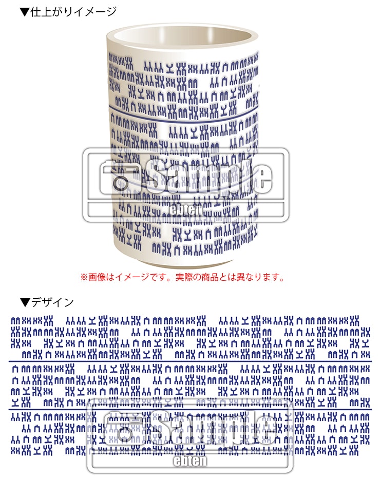 本作の象徴的なオブジェクトの一つである、アマラ転輪鼓をモチーフにした湯呑みです。撥水技術を施した絵付けによる凹凸の立体感が、湯呑みの風合いを引き立たせる仕上がりです。