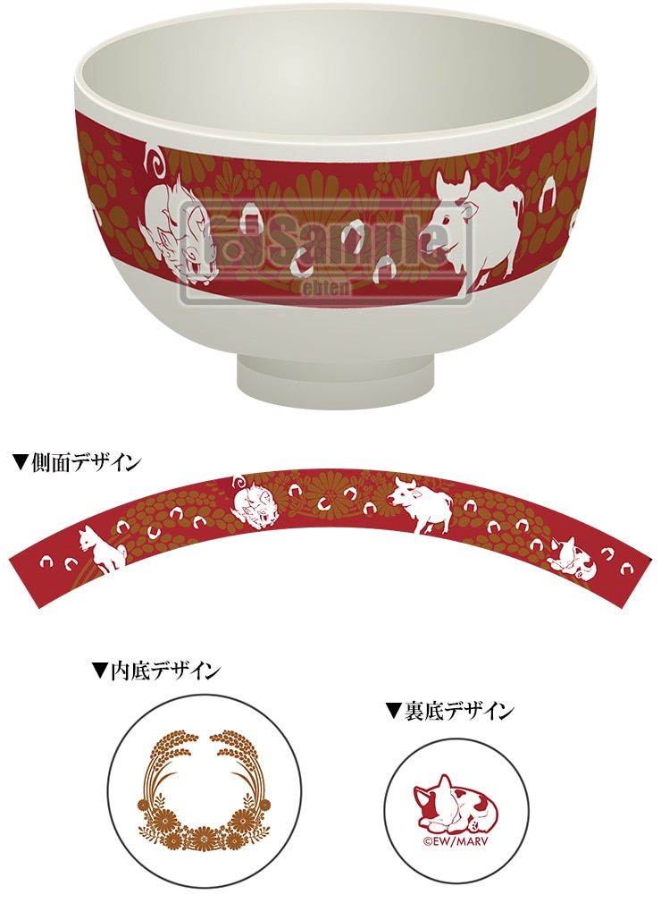 本作に登場するキャラクターのモチーフを使用したエビテンオリジナルデザインのお茶碗です。