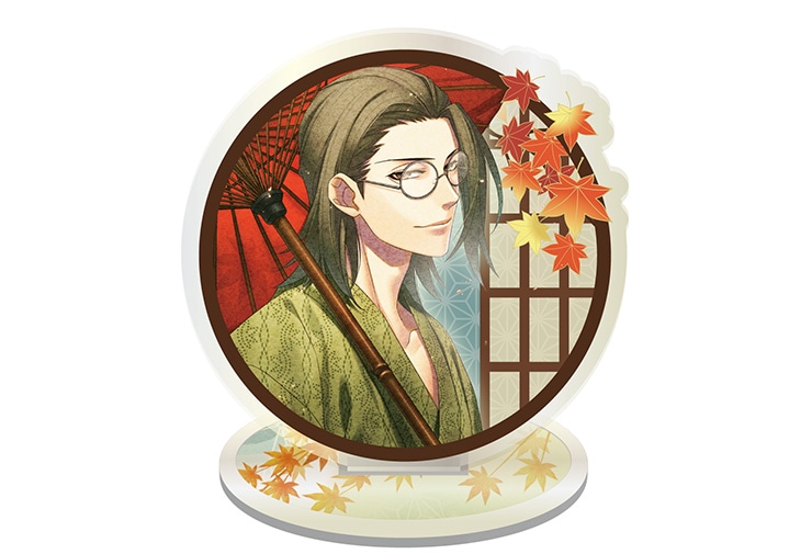 カバーを飾る描き下ろしビジュアルやゲーム内スチルを使用した、各キャラクターそれぞれの缶バッジ3種&アクリルスタンドのセットです。