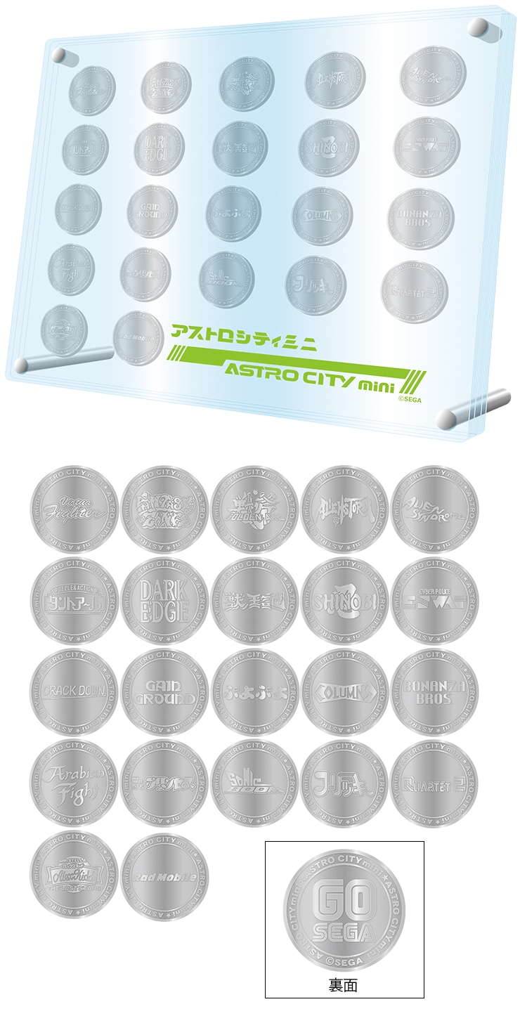 アストロシティミニに収録されたタイトルの中から22種を厳選し記念メダルに。観賞用にメダルが収納できる専用のアクリルディスプレイをセットにしました。