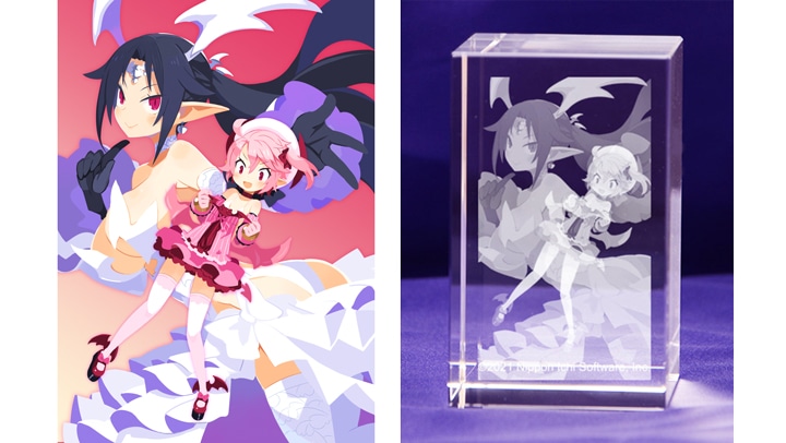 原田たけひと氏描き下ろしイラストをクリスタルキューブ内に3D立体レーザー彫刻で再現した3Dクリスタルです。