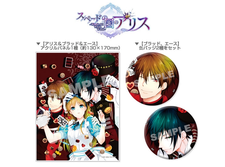 表紙を飾る描き下ろしビジュアルより、【アリス&ブラッド&エース】のアクリルパネル1種(約130×170mm)と【ブラッド、エース】の缶バッジ2個をセットにしたスペシャルグッズ付きでお届けします。