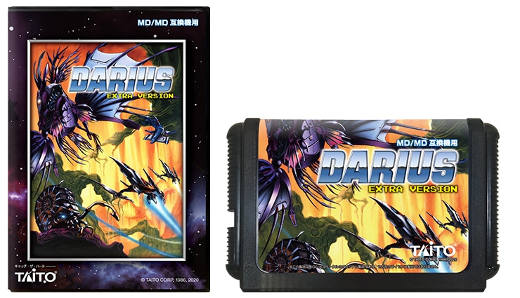 「ダライアス」にアップデートを加えたバージョン「ダライアス エクストラバージョン」のMD/MD互換機カートリッジ(ebten限定ジャケット版)です。