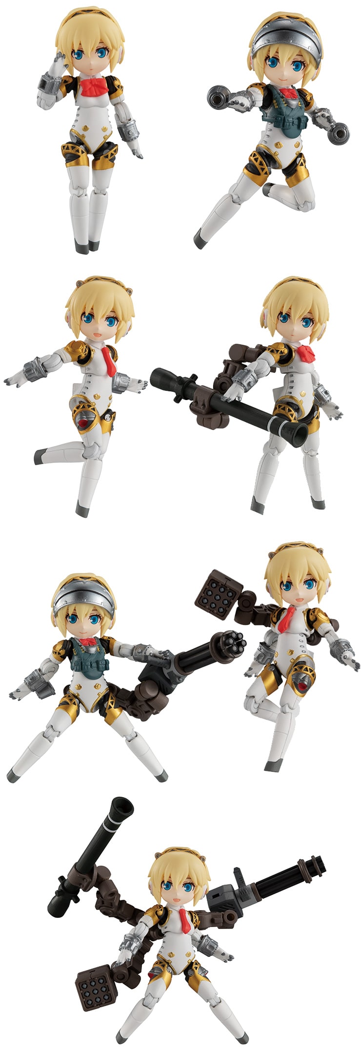 大人気『ペルソナ』シリーズがデスクトップアーミーに登場。黒星紅白氏のキービジュアルのイメージを再現した「アイギス」達が80mmのかわいい素体で勢揃いであります。P3版、P3F版、P4U版の3種の「アイギス」を細かい造詣で再現。素体は腰に稼働が追加された最新版をベースとしており、劇中のあらゆるポーズが再現可能です。また、それぞれに武装パーツが付属しており、その3種の武装を集めると「フル装備状態」が再現可能となっております。勿論、シリーズ共通のハードポイント内蔵で従来のシリーズとの互換性もバッチリ。武装の組み合わせは無限大!自分だけの小隊を創ってデスクトップを制圧しよう!