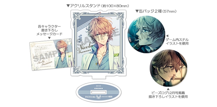 缶バッジ2種は、ゲーム内スチル1種&ビーズログ12月号に掲載をした描き下ろしイラスト1種からお届けします。