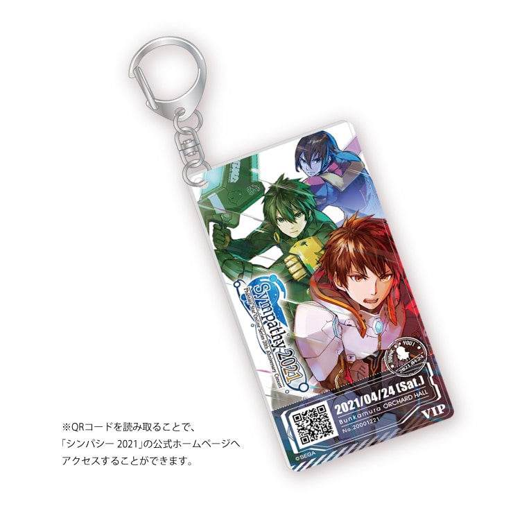 「シンパシー2021」のVIPチケットをイメージして『PSO』20周年イラストをあしらったアクリルプレートキーホルダーができました。公演鑑賞の際は、このキーホルダーをぜひお手元に置いてくださいね!鑑賞確認のスタンプは先に押しておきました。