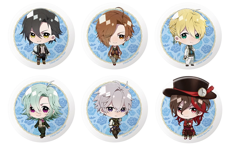 「ルデル・クロイツ」「リアン・ イェブラム」「クアト・ヘルトリング」「ジル・ ハニッシュ」「ユナカ・ギースベルト」「ガネット」のちびキャライラストを使用した缶バッジ6種セット。