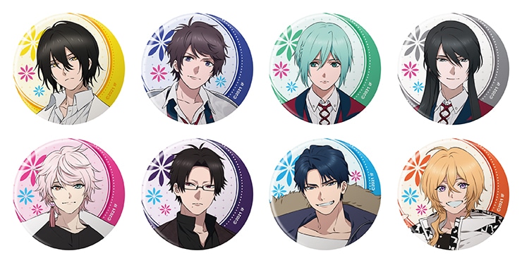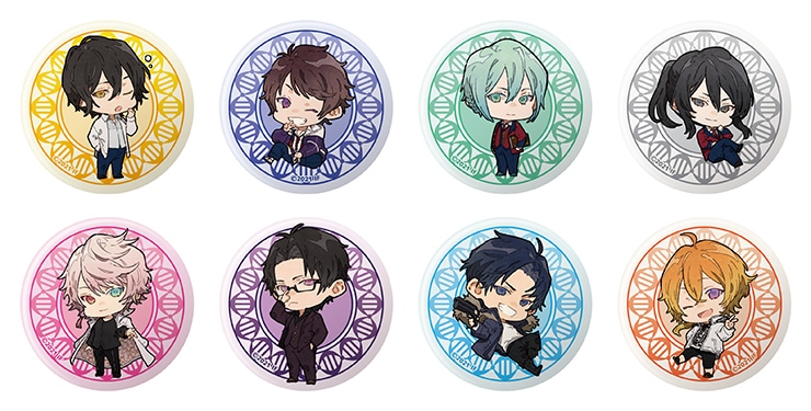 「高遠トキオ」「栖原カムイ」「新記ミハヤ」「間宮アユム」「伊吹」「冨司リョウ」「日向」「雪波」のちびキャライラストを使用した缶バッジ8種セット。