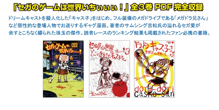 サムシング吉松氏によるセガ愛あふれるコミック 「セガのゲームは世界いちぃぃぃ!」(通称「セゲいち」)全3巻をPDF形式にて完全収録。電子書籍が存在しない本作が初デジタル化。