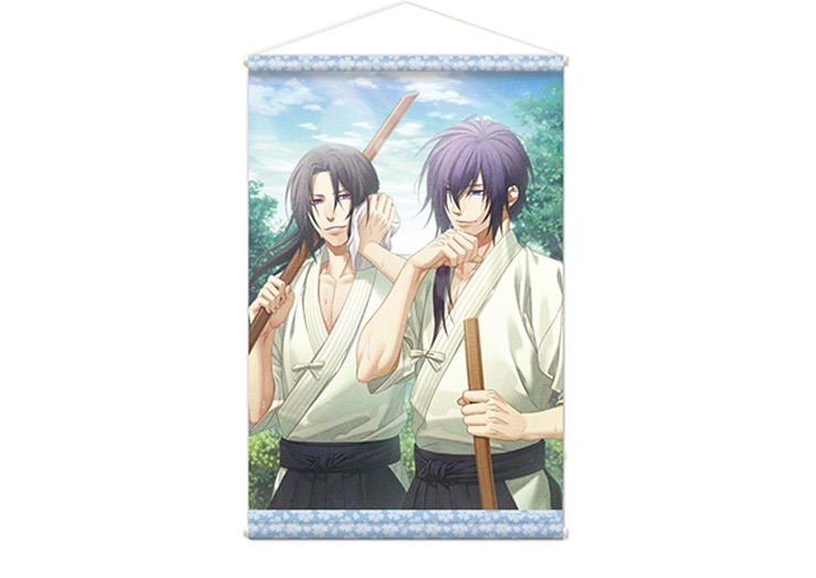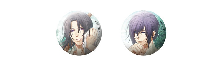 「土方歳三」「斎藤一」の描きおろしイラストを使用した、A2タペストリーと缶バッジ。
