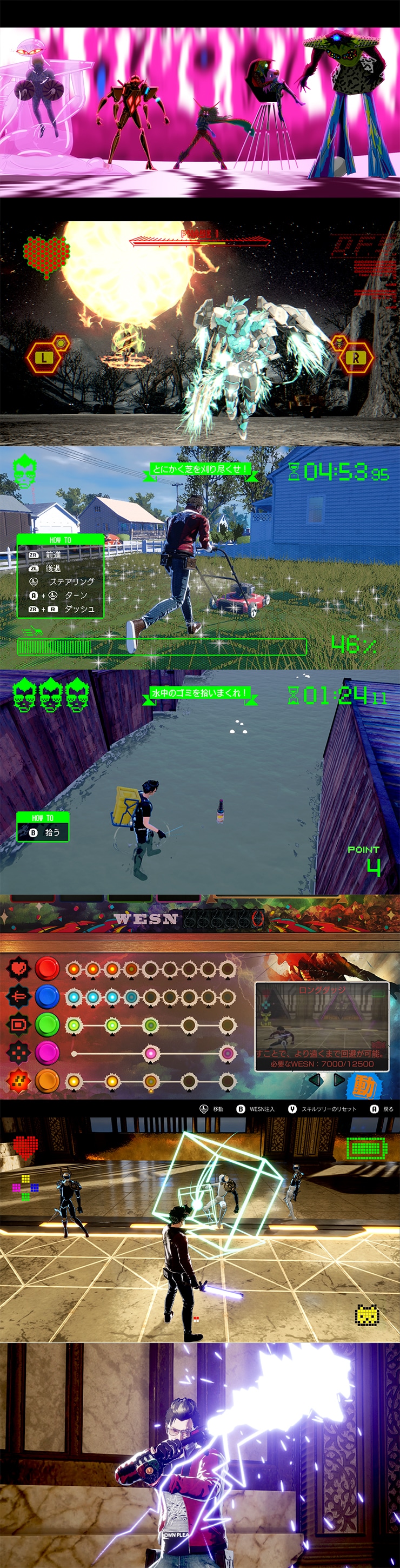「ノーモア★ヒーローズ3」は、オタクな殺し屋”トラヴィス・タッチダウン”が愛用の武器”ビーム・カタナ”を手に、個性豊かな敵を相手に爽快なバトルを繰り広げ、殺し屋ランキングの頂点を目指す、殺し屋アクションアドベンチャー「ノーモア★ヒーローズ」シリーズの最新作です。