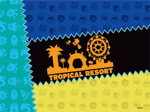 本作のステージ1を飾る「トロピカルリゾート」をイメージしたランチョンマットです。地紋には本作の舞台となる宇宙に浮かぶテーマパーク「エッグプラネットパーク」の各惑星モチーフの意匠をデザインしています。