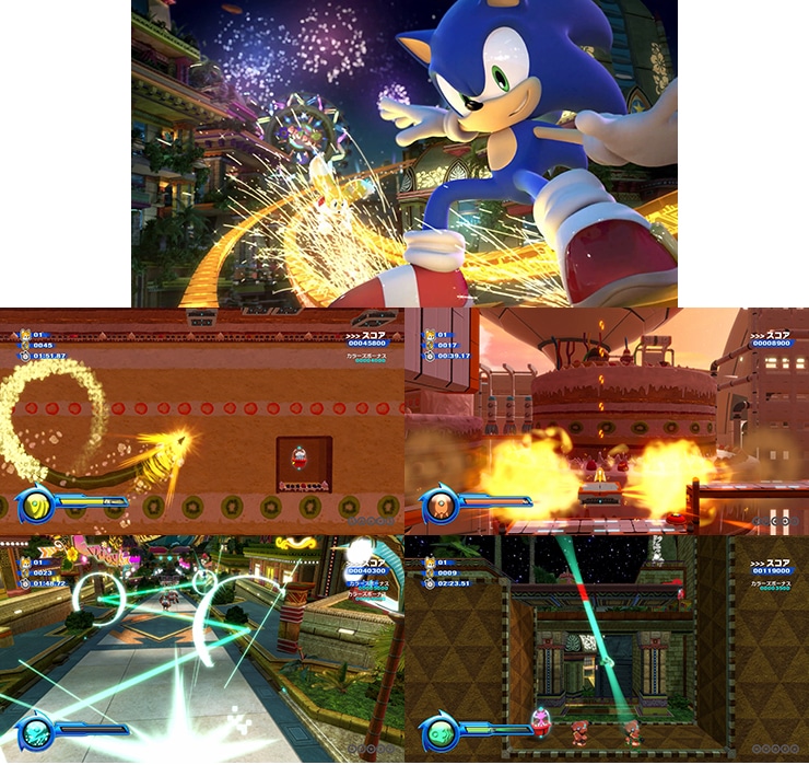 本作の舞台は、リゾート風のエントランスや雲の上のお菓子工場、宇宙戦艦によるパレードなど、惑星をまるごとアトラクションにした広大な遊園地です。この遊園地で、ユニークなロボットやカラフルな宇宙人「ウィスプ」と出会い、ソニックの新たな冒険が始まります。ウィスプたちの力を借り、特別なアクション「カラーパワー」を発動させることで、バラエティ豊かで爽快なアクションをお楽しみいただけます。