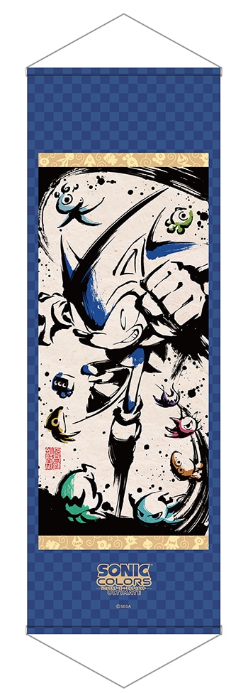 墨絵をモチーフに描かれたソニックのグッズシリーズ『墨絵 超音速針鼠』とのコラボレーショングッズです、本作のために描き下ろした新規イラストを使用した掛け軸風デザインのタペストリーです。