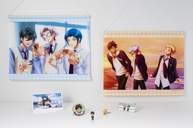「風真玲太・七ツ森実・柊夜ノ介」および「颯砂希・本多行・氷室一紀」の描き下ろしイラストを使用したタペストリーです。