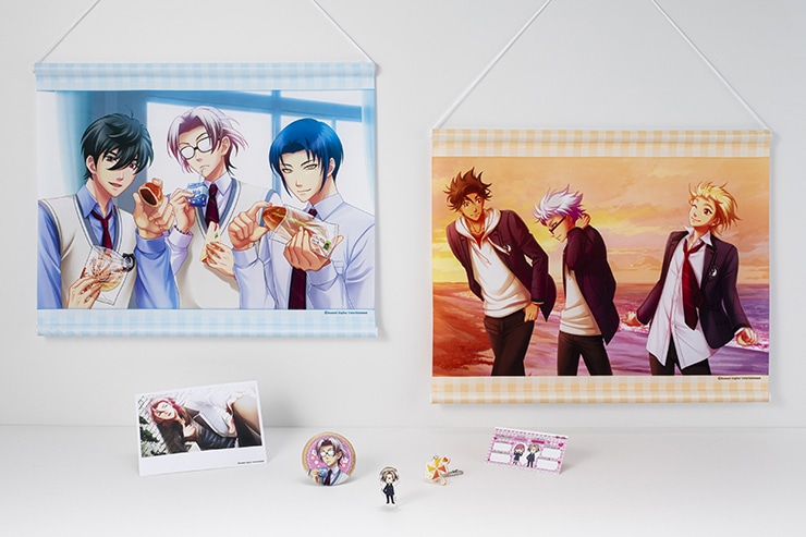 「風真玲太・七ツ森実・柊夜ノ介」および「颯砂希・本多行・氷室一紀」の描き下ろしイラストを使用したタペストリーです。