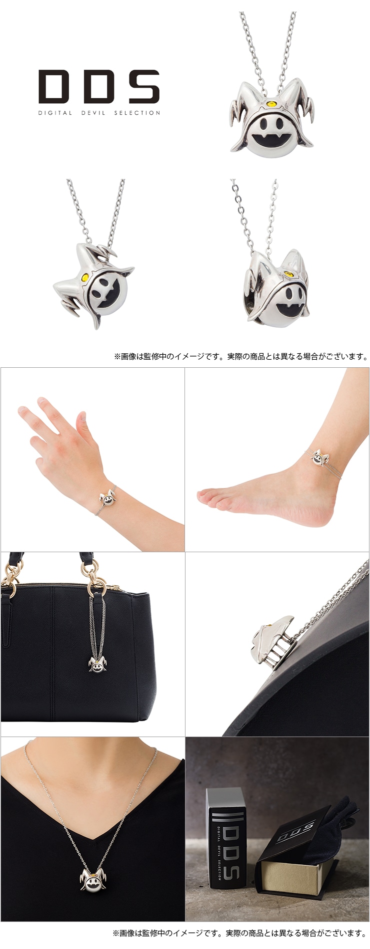 『真・女神転生』シリーズの公式ブランド「DDS」とコラボレーションした本セットでしか手に入らないオリジナルシルバー製アクセサリーです。新規格構造により、チェーンの通し方で「ネックレス」「ブレスレット」「バッグチャーム」「アンクレット」など、様々な用途で使用できるほか、着用した際のフェイスの角度も調整できるなど、細かいこだわりに対応できるバリュアブルアイテムになっています。「DDS」特製ケースに同梱してお届けいたします。
