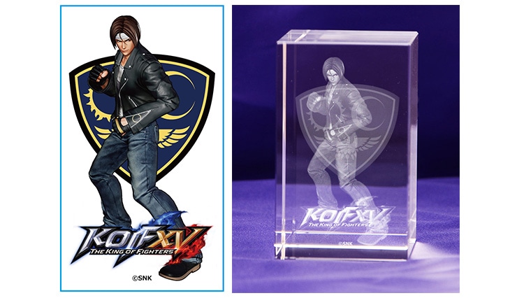 「草薙京」のビジュアルをクリスタルキューブ内に3D立体レーザー彫刻で再現した3Dクリスタルです。