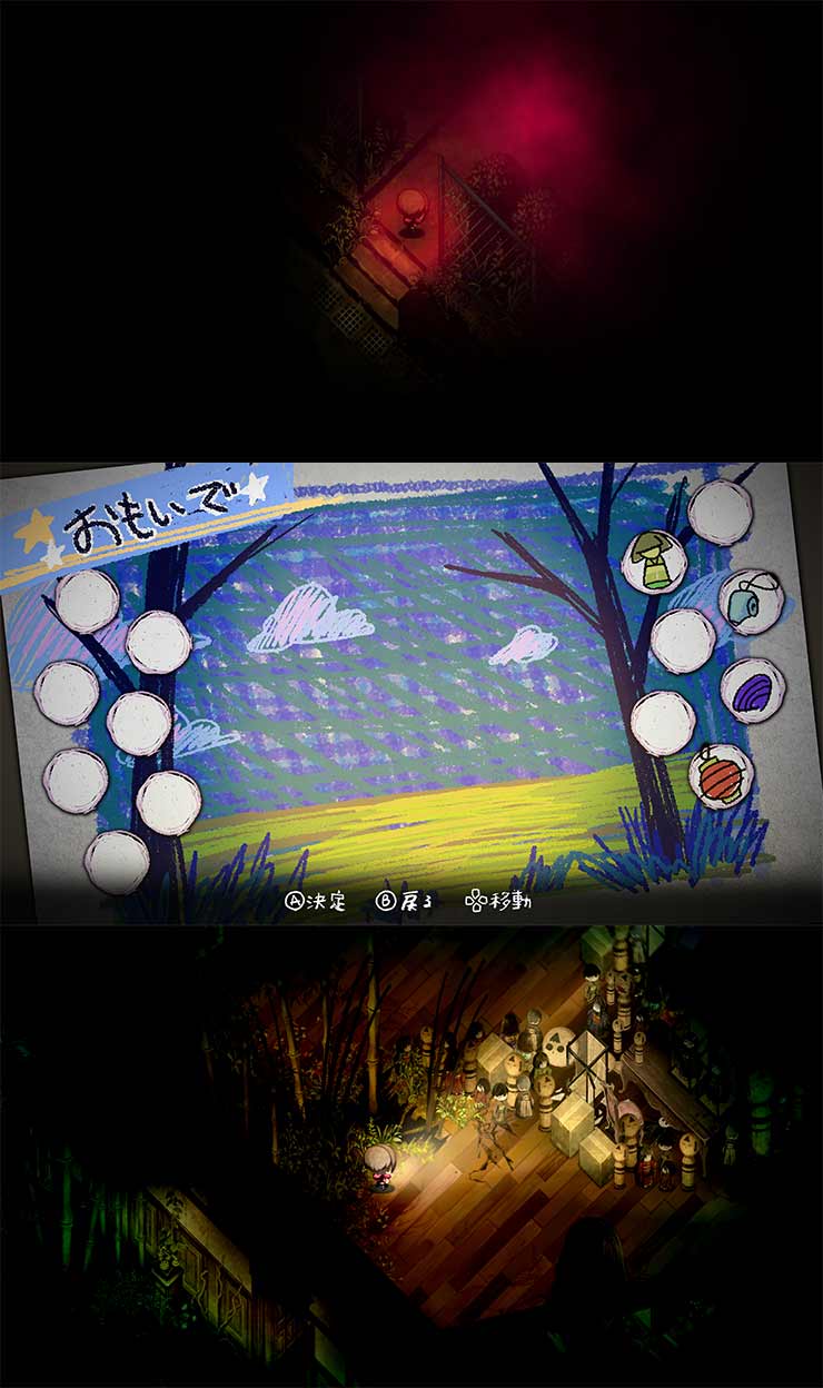懐中電灯の灯りと、心臓の鼓動を頼りに「お化け」から逃れ、失くした思い出を探し出しましょう。