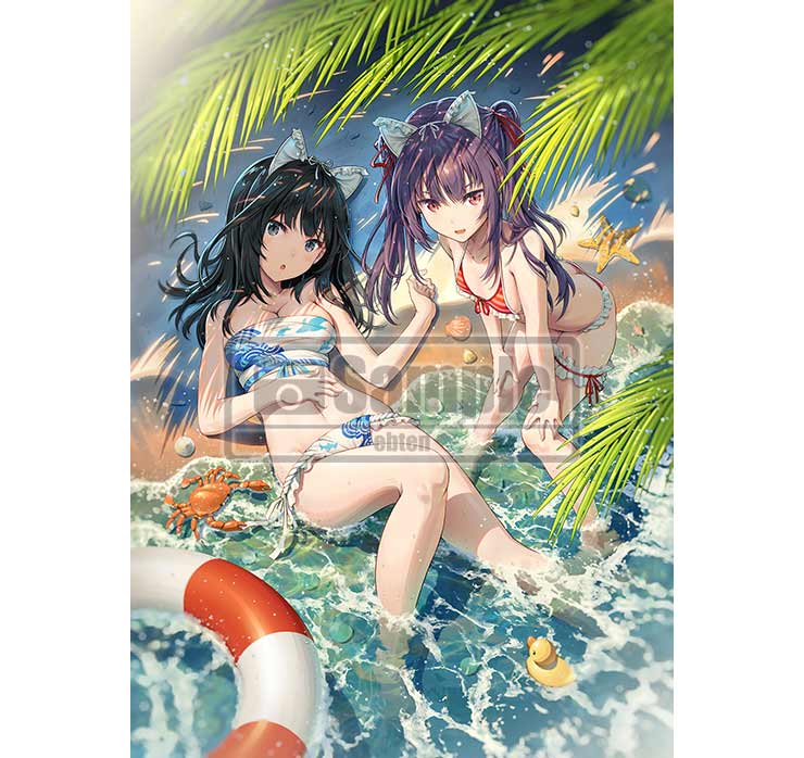 ジャケットイラスト楓&綾香を全面にあしらった、南国ビーチにぴったりなサマーブランケット。