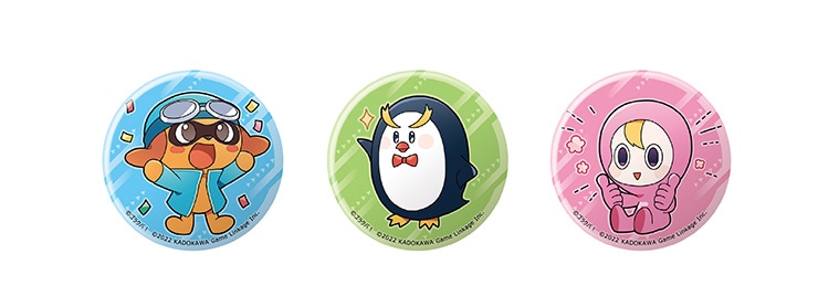 「いぬたぬき」「ぺんと」「えんちょう。」の描き下ろしイラストを使用した缶バッジ3種セットです。