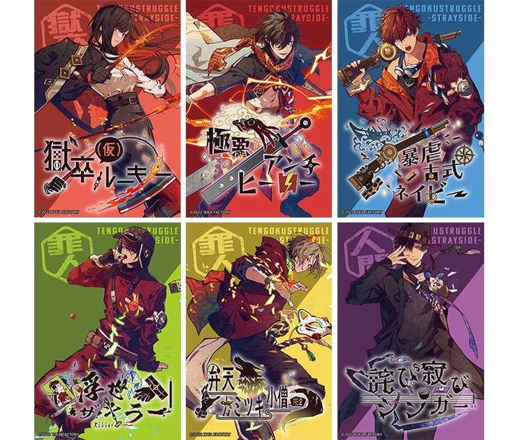 「主人公」「五右衛門」「誉那」「写楽」「菊之助」「JacK」の全身イラストを使用したブロマイド6種セット。