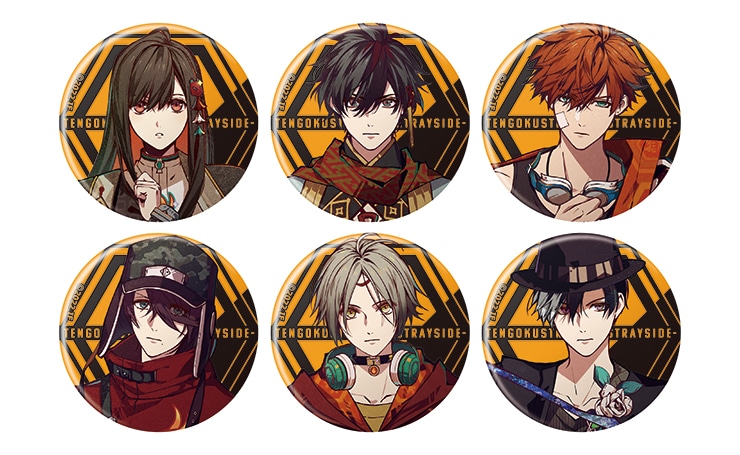 「主人公」「五右衛門」「誉那」「写楽」「菊之助」「JacK」のイラストを使用した缶バッジ6種セット。