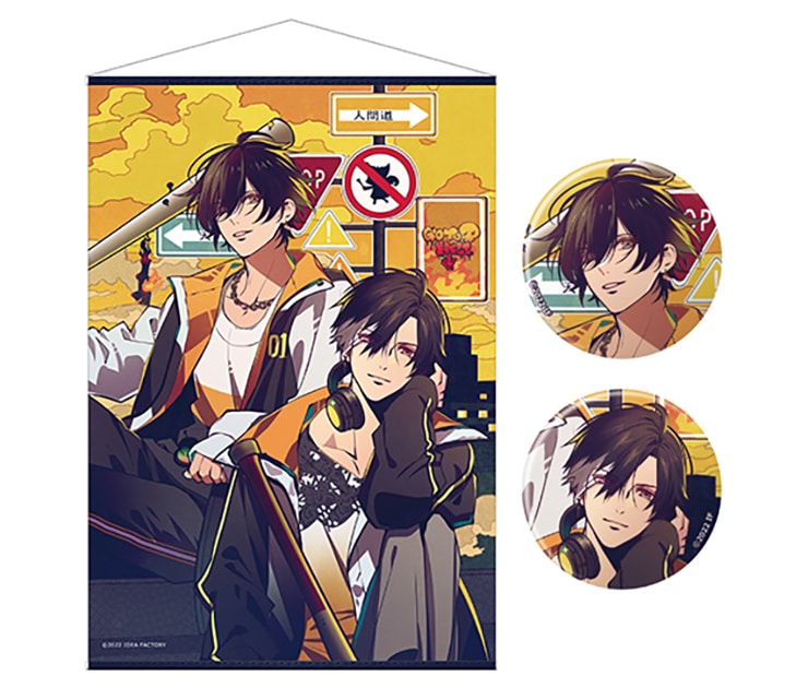 「五右衛門」「JacK」の描きおろしイラストを使用したA2タペストリーと缶バッジです。
