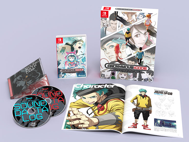 限定版特典には序盤の進め方と操作ガイド、あらすじ、キャラクター紹介などを掲載したガイドブック「A BEGINNERS' GUIDE TO EARTH SIMULATOR」とゲーム内BGMを収録したサウンドトラックCD「ANONYMOUS;CODE SOUND DATA LOG」を同梱。