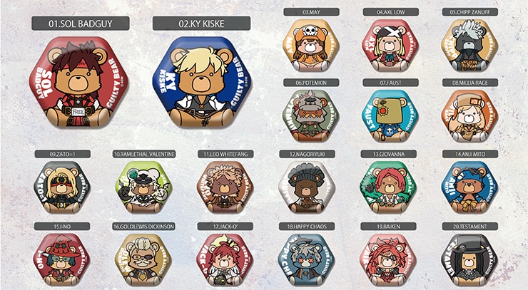 2022年のエイプリルフールに発表された『GUILTY BEAR(ギルティベア)』から徹底的にかわいさに拘った缶バッジが発売。全20キャラのデザインです。