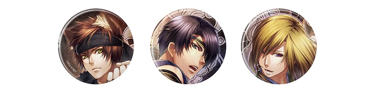 2012年発売「十三支演義 ~偃月三国伝~ DXパック」で使用した、悌太氏による描き下ろしイラストより、猫族の“張飛”、曹操軍の武将“夏候惇”、呂布軍の武将“張遼”の缶バッジ3種セットです。