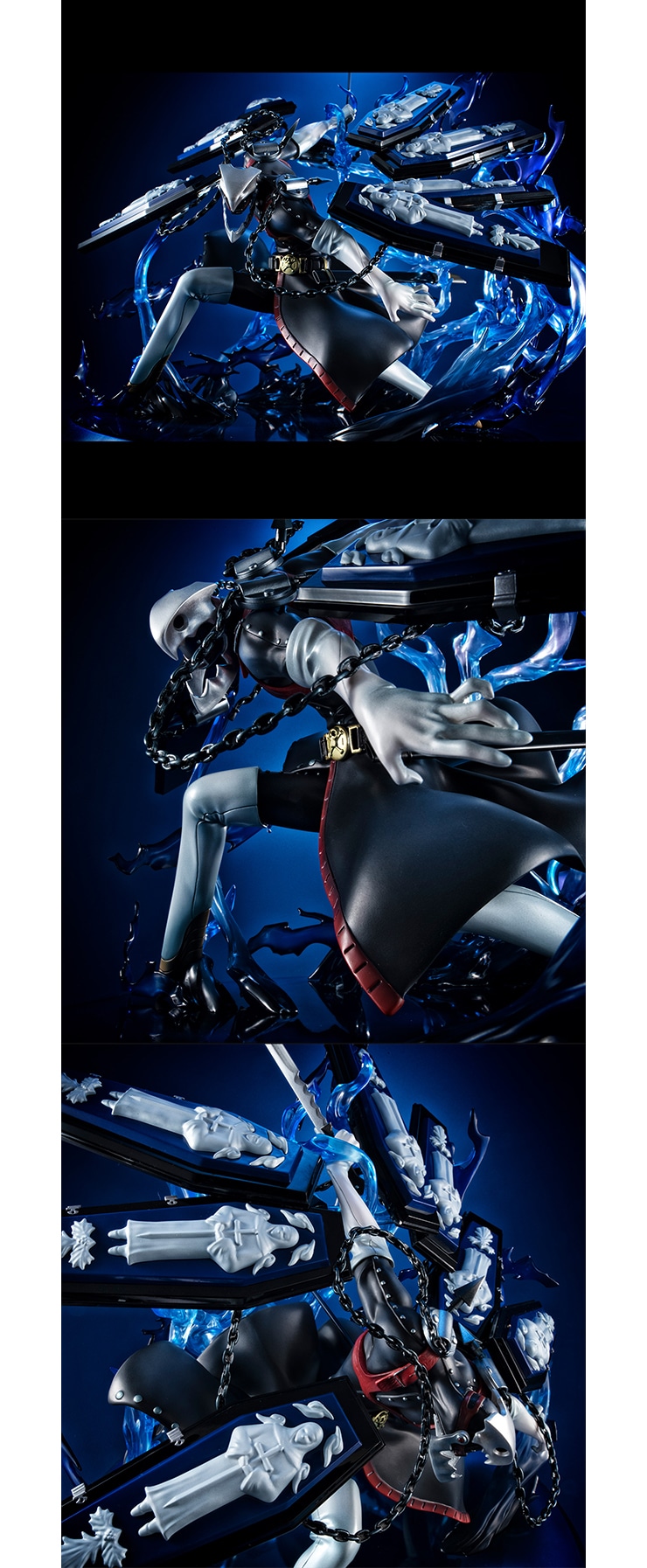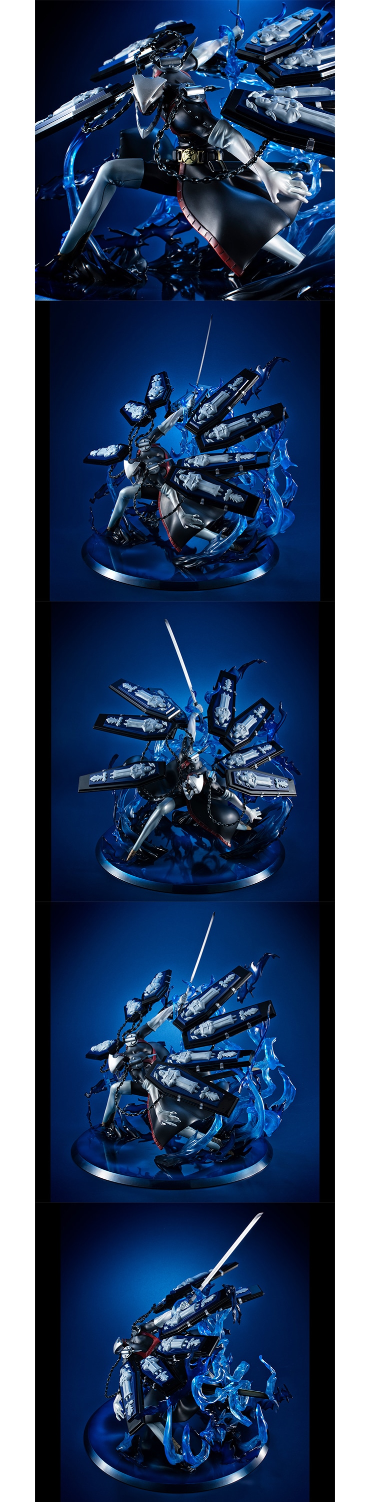 複雑に絡み合うエフェクトパーツと無数の棺桶を背負い、刀を振りかぶった大胆なポージングを圧巻のクオリティで再現。