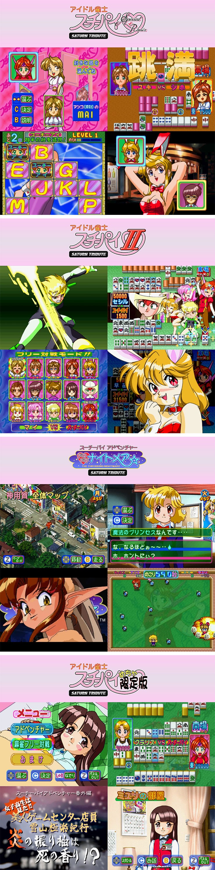 『アイドル雀士スーチーパイ めちゃ限定版』……『Special』『II』のアレンジ移植版に加えて、総勢36人のフリー対局や新作アドベンチャーゲームを収録。