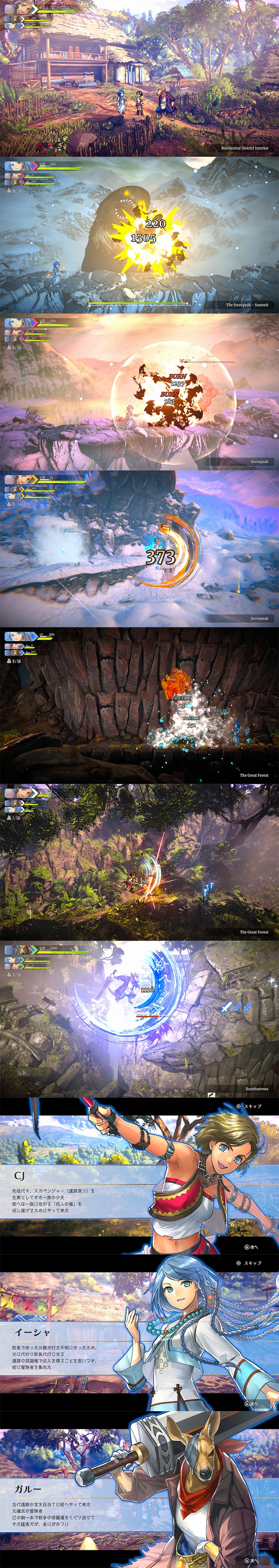 『百英雄伝 Rising』は“アクションゲーム”に不慣れなユーザーも、CJ、ガルー、そしてイーシャという3人のプレイキャラをサクサク切り替えて、爽快なアクションプレイが楽しめるシステムを採用しています。