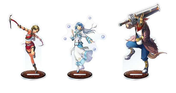 本作メインキャラクター「CJ」「イーシャ」「ガルー」の各ビジュアルを使用したアクリルスタンド3種セットです。