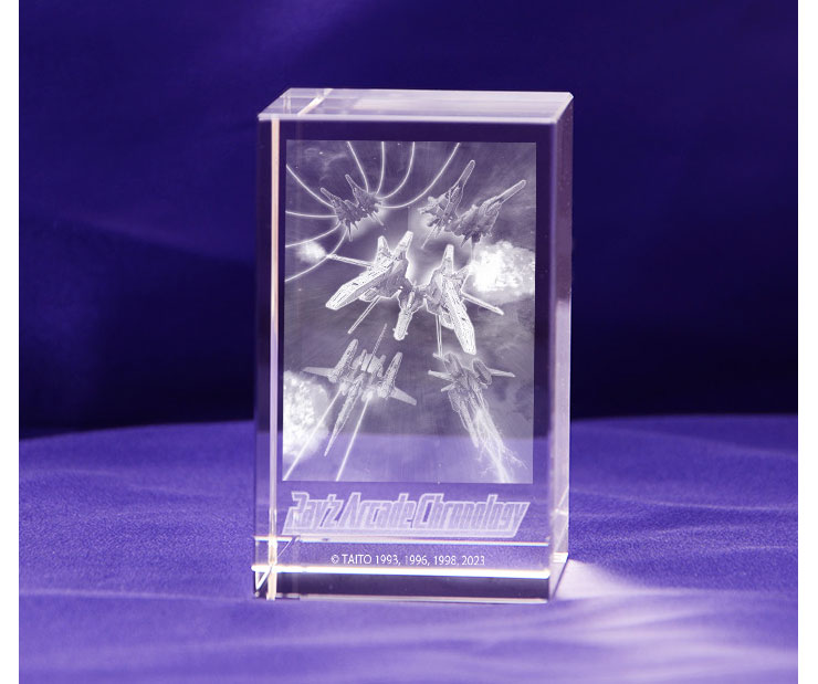 本作のキービジュアルをクリスタルキューブ内に3D立体レーザー彫刻で再現した3Dクリスタルです。