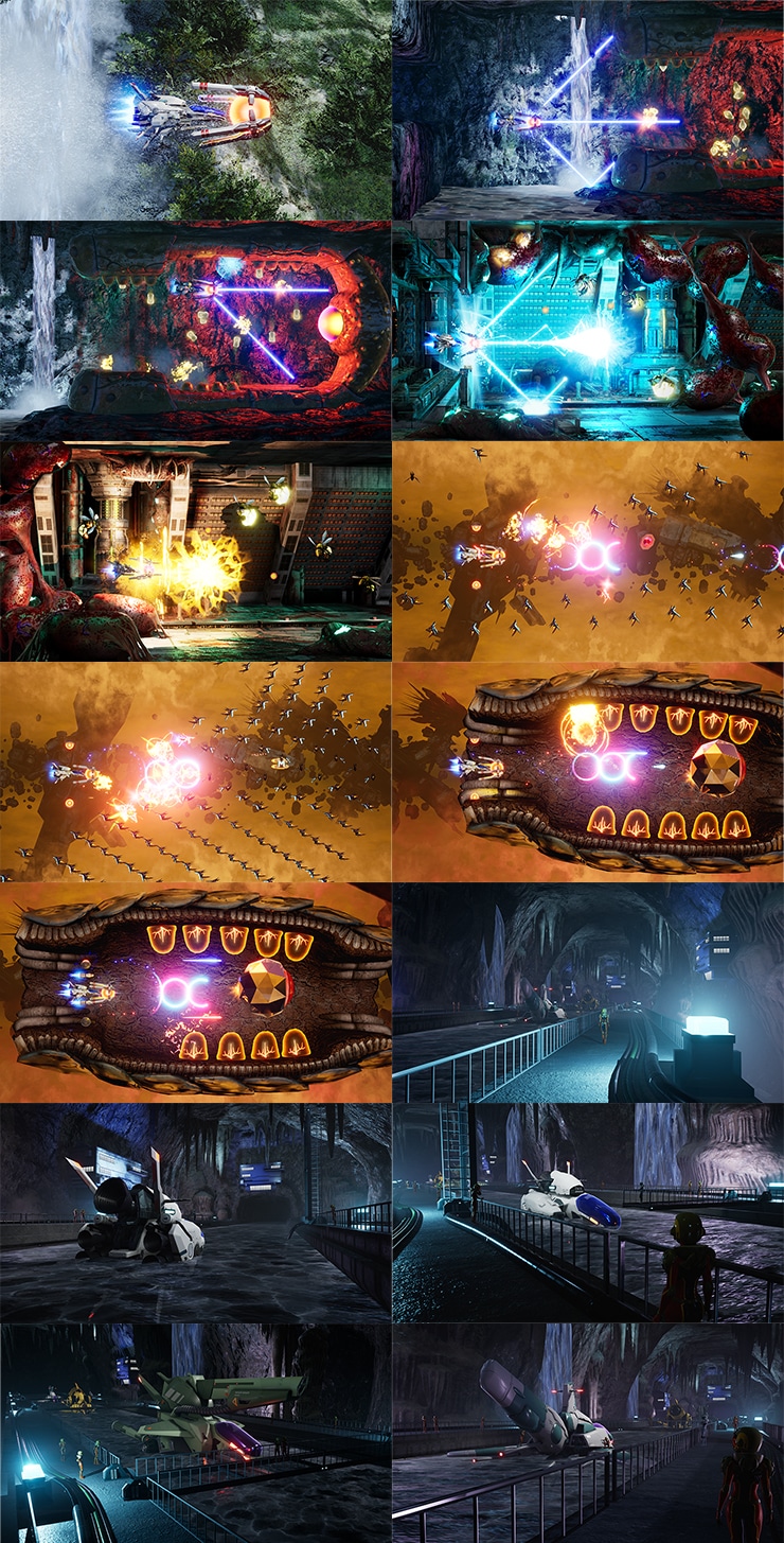 プレイヤー機体は、カラーリングやデカールなどを自由にカスタマイズして自分だけの機体を作ることが可能。 「R-TYPE」ならではのゲーム性はそのままに、サイドビューシューティングゲームとしての遊びごたえと爽快感を最大限に追求。