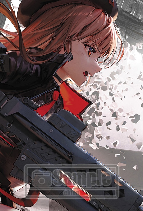 特別付録として、(1)『NIKKE』の重厚なワールドを感じるイラストを両面に使った大判ポスターと、(2)武器を身構えるポーズのニケたち10人のイラストを楽しめるイラストカードが付いている。