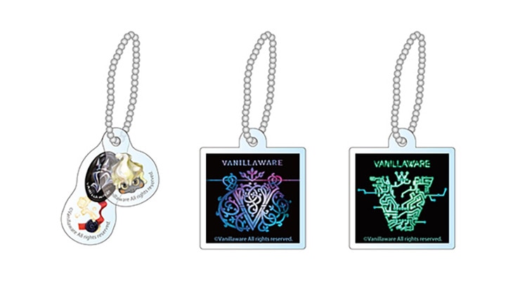 ヴァニラウェア創業時のロゴ、『オーディンスフィア レイヴスラシル』開発時のロゴ、『十三機兵防衛圏』開発時のロゴのアクリルキーホルダー3種セットです。