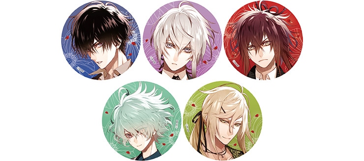 柳 愛時、岡崎 契、榎本峰雄、笹塚 尊、白石景之の等身イラストにデザインをあしらった缶バッジ5種セットです。