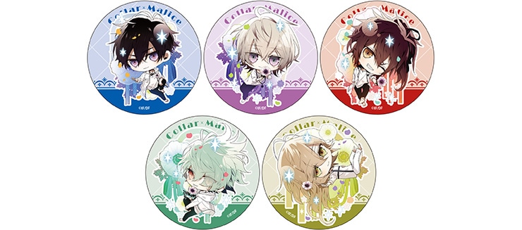 柳 愛時、岡崎 契、榎本峰雄、笹塚 尊、白石景之のちびキャラ缶バッジ5種セットです。