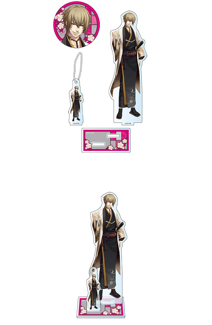 高さ約150mmの大きいアクリルスタンドと、同じイラストの小さいアクリルスタンドを並べて楽しめるアクリルスタンドです。大きいアクリルスタンドは観賞用に、小さいアクリルスタンドはキーホルダーにもできるので、缶バッジと一緒にお出かけに連れ出せる、旦那尽くしの一揃えです。