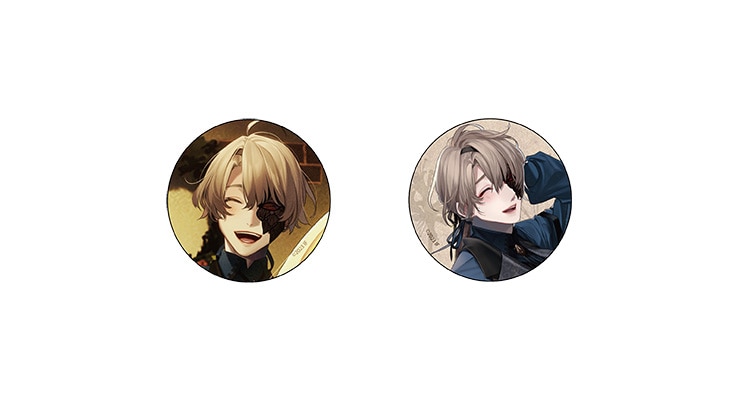 ワイドアクリルパネルのイラストと書きおろしメッセージ入りブロマイド風カードのイラストの缶バッジです。