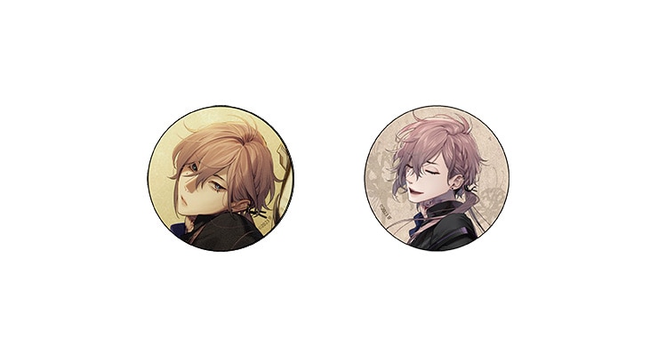 ワイドアクリルパネルのイラストと書きおろしメッセージ入りブロマイド風カードのイラストの缶バッジです。